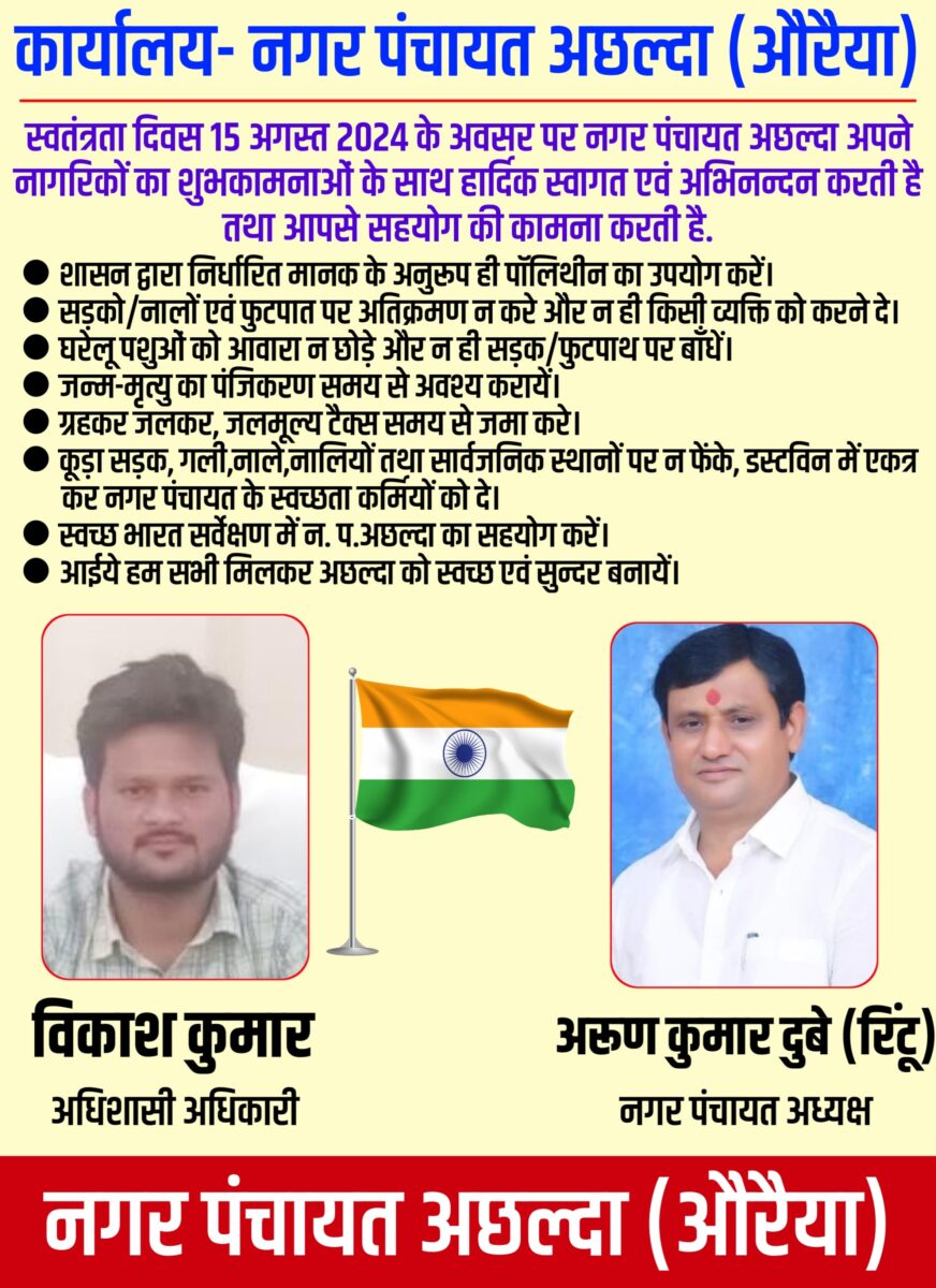 औरैया,(प्रधुम्न पोरवाल):नगर पंचायत अछल्दा सभागार में बोर्ड की बैठक हुई।जिसमें मुख्यमंत्री वैश्विक नगरोदय योजनांतर्गत वार्ड सभासदों से चर्चा हुई जिसमें नाला,नाली,इंटरलाकिंग रोड,इंटरलाकिंग फुटपाथ के 1 से 51 कार्य अनुमानित लागत 6 करोड़ 31 लाख 50 हजार के निर्माण कार्यो के प्रस्ताव को बोर्ड ने मंजूरी दी।
