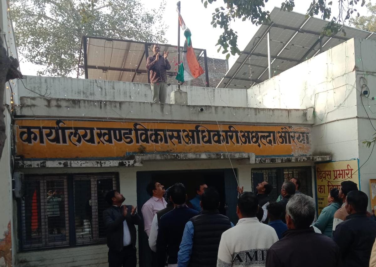औरैया,संवाददाता:आजादी का 77 वां गणतंत्र दिवस का जश्न धूमधाम से मनाया गया।कस्बा समेत विकास खंड अछल्दा क्षेत्र में जगह -जगह आयोजनों की धूम मची रही राष्ट्रीय ध्वजारोहण बाद प्रभातफेरी निकाली गई।पुरोधाओं को शत शत नमन करते हुए पुष्पांजलि अर्पित की गई।
