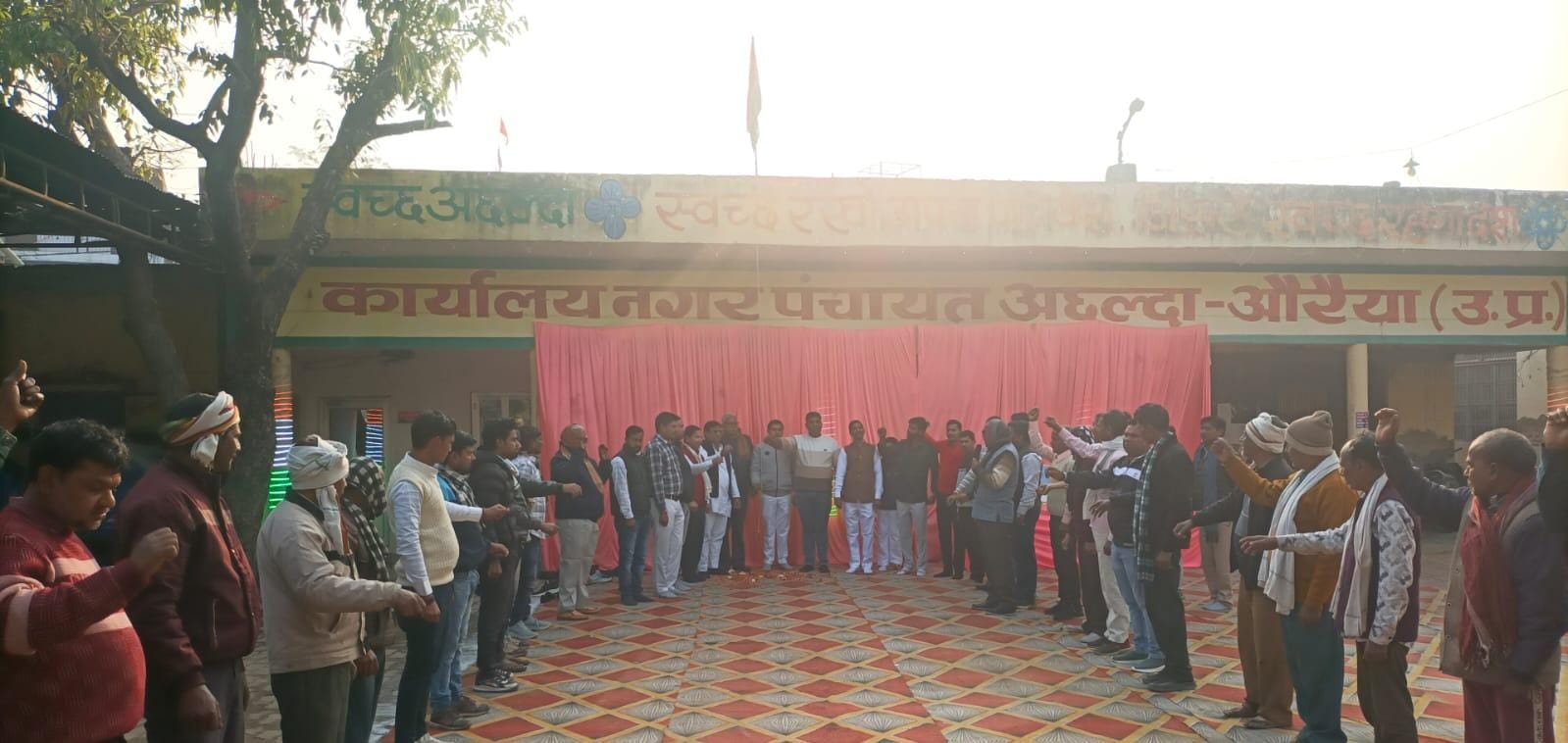 कस्बा अछल्दा नगर पंचायत भवन पर अध्यक्ष अरूण कुमार दुबे रिंटू ने ध्वजारोहण बाद सभासदों समेत कर्मियों ने बलिदानियों के चित्रों और राष्ट्रपिता महात्मा गांधी की प्रतिमा पर फूल मालाएं चढ़ाकर उन्हें नमन किया।उत्कृष्ट कार्य करने वाले कर्मियों को सम्मानित किया गया।